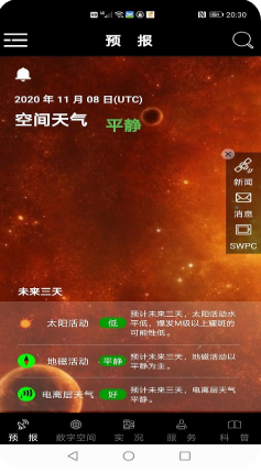 3、每天發(fā)布最及時的空間天氣狀態(tài),時刻掌握最新的空間天氣變化