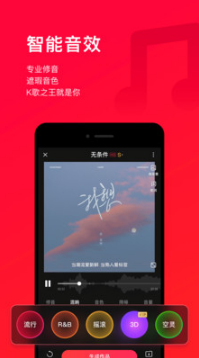 2、強(qiáng)大的音效、一鍵修音功能,給你錄音棚般K歌享受