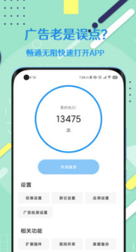 手機(jī)應(yīng)用啟動(dòng)總有廣告,這款軟件能幫你過(guò)濾廣告,不會(huì)因?yàn)檎`點(diǎn)進(jìn)入跳轉(zhuǎn)頁(yè)面,給用戶一個(gè)極好的觀看體驗(yàn)。軟件內(nèi)存小,使用簡(jiǎn)單,無(wú)需root即可使用!