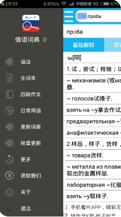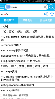 1、俄語單詞與漢語的翻譯輸入俄語單詞可以很快的翻譯出與之對應(yīng)的漢語解釋、例句和變化