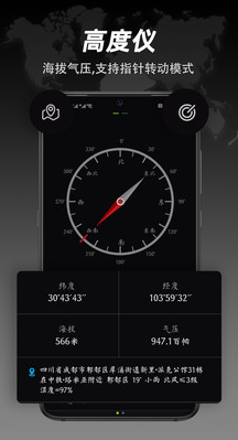 旅行必備的全能指南針,讓您隨時(shí)掌握方向,并可獲取當(dāng)前位置的實(shí)時(shí)氣壓、高度、經(jīng)緯度等信息!有了它,航海、野外探險(xiǎn)、城市道路,不在話下,是您出行的必備工具!