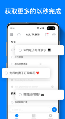 1、拖放可安排你的日程、劃掉一個(gè)任務(wù)可標(biāo)記其為完成,搖晃設(shè)備可清除已完成的任務(wù)