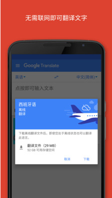 谷歌翻譯可以讓人們跨越語言障礙,推動不同地區(qū)不同文化的人群進一步交流,并支持在線翻譯和離線翻譯兩種方式,可借助谷歌翻譯進行文檔文件拍照,翻譯,簡單便捷的操作過程,精準的翻譯結果,大大的提高工作效率。且?guī)缀蹩梢栽谌魏涡枰g的場景使用,無論工作、生活、學習、出行,甚至是玩英文版游戲時,它都能幫助你消除語言的障礙!
