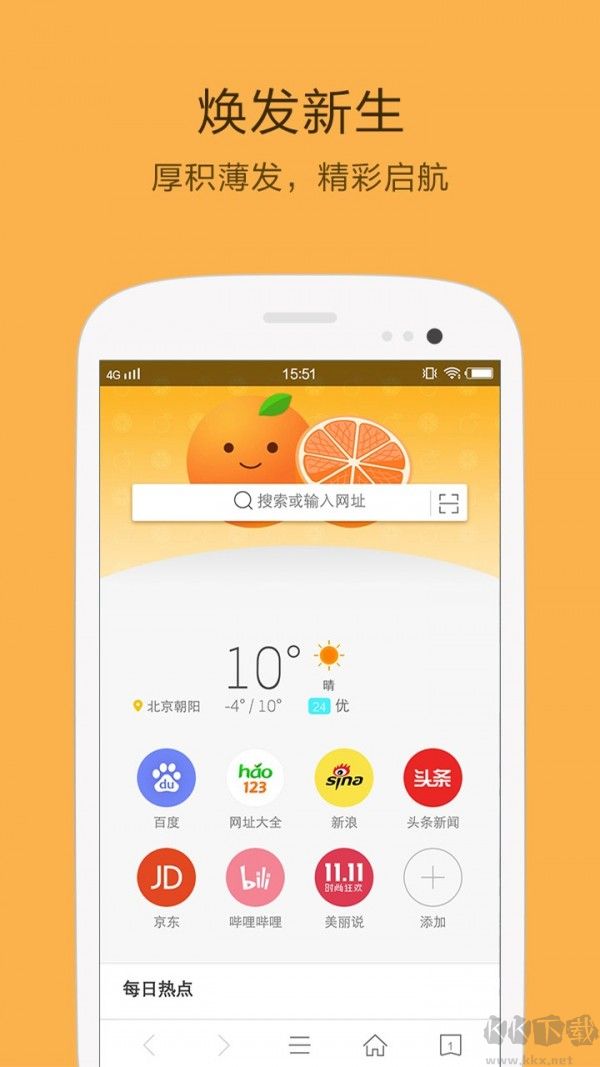 《橘子瀏覽器APP》是一款輕量級(jí)的手機(jī)瀏覽器,簡單好用超省流量,可快速訪問該網(wǎng)站。 讓用戶輕松訪問互聯(lián)網(wǎng)。一站式全網(wǎng)搜索,幫你找到想要的內(nèi)容!感興趣的朋友不要錯(cuò)過,KK下載站推薦大家下載體驗(yàn)!