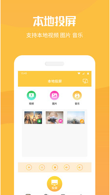 2、可以將本地媒體一鍵投屏到電視屏幕上,支持視頻,圖片,音樂(lè)等,大屏幕分享更暢快