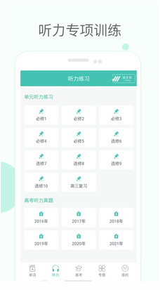 為用戶提供大量專業(yè)英語學(xué)習(xí)教程,讓用戶可以在這里輕松學(xué)英語,快速提高英語成績。讓高中學(xué)子可以在這里更好的進(jìn)行單詞的學(xué)習(xí),支持單詞在線學(xué)習(xí)、單詞智能記憶等功能,高中生高考背單詞必備軟件!