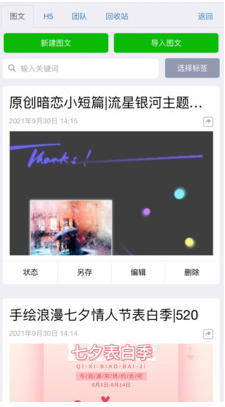 1、可以管理自己秀米賬號(hào)下面保存的圖文/秀
