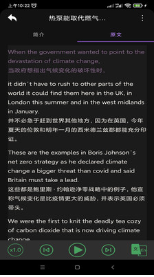 3、內容針對不同英語程度的學習者提供全英文和中英文對照兩種模式,并可以隨意切換