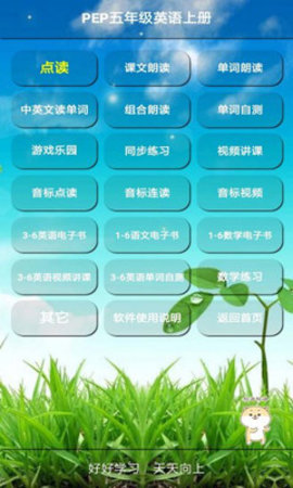 1、小學五年級上冊英語所有課文、單詞的翻譯、朗讀。(單詞朗讀有二種模式:純英文讀、中文-英文,方便記憶)