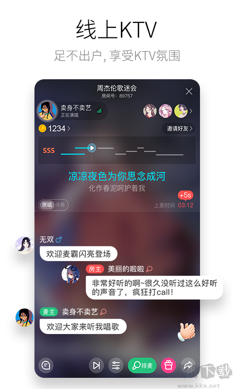 1.K歌直播,隨時在線K歌互動,圓你一個主播夢。