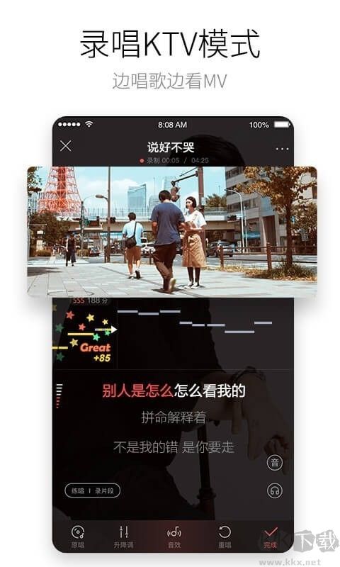 包含酷狗曲庫資源,伴奏品質(zhì)高,具有多種特色音效、作品免費(fèi)下載、智能打分、練唱、合唱等功能。