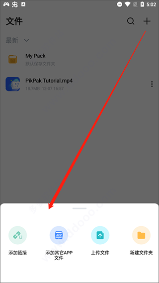6、還可直接添加鏈接、添加其他app文件、上傳文件等內(nèi)容到網(wǎng)盤中