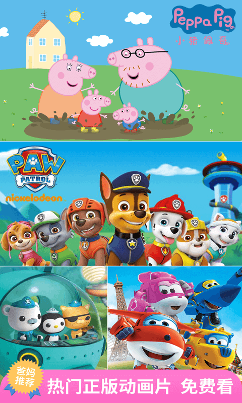 海量幼兒影視資源:如動(dòng)畫片、小故事、學(xué)本領(lǐng)等等。在動(dòng)畫片欄目,我們可以看小豬佩奇、汪汪隊(duì)立大功等經(jīng)典動(dòng)畫。如果你的寶寶喜歡聽睡前故事,故事欄目的小故事,它也都能滿足你,兒歌多多號(hào)稱有3億資源。