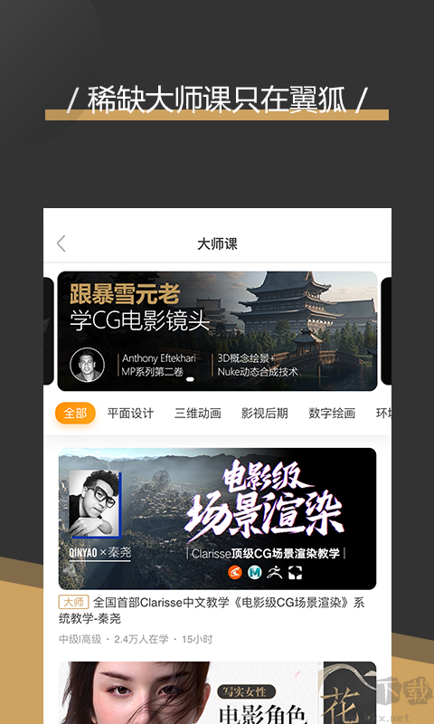 翼狐網(wǎng)手機(jī)客戶端是翼狐網(wǎng)為廣大用戶推出的手機(jī)版APP,翼狐是一款提供優(yōu)質(zhì)教學(xué)視頻的學(xué)習(xí)平臺(tái),上面有優(yōu)質(zhì)的PS、CAD、maya、CDR、AI、AE、3dmax等軟件教程,更有CG素材下載及最新設(shè)計(jì)資訊速遞翼狐網(wǎng)app涵蓋平面設(shè)計(jì)、游戲制作、影視后期、UI設(shè)計(jì)等九大行業(yè),是目前學(xué)習(xí)設(shè)計(jì)軟件最好的平臺(tái)APP。