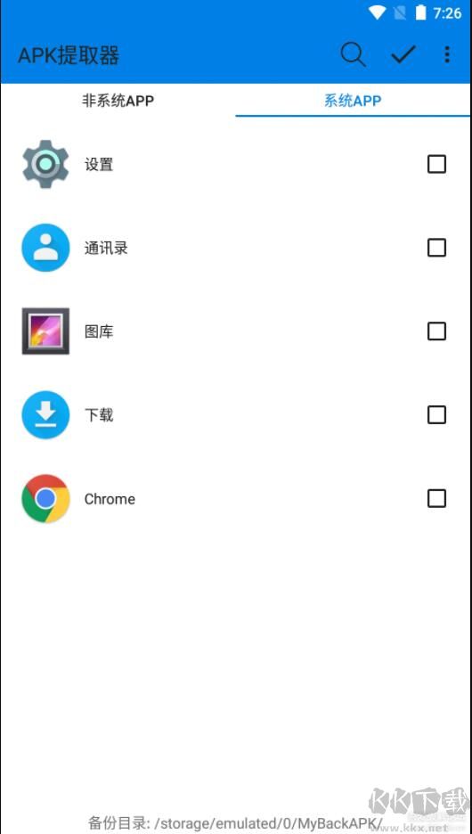 2.可以提取應(yīng)用的APK安裝包(包括系統(tǒng)自帶的應(yīng)用)到手機(jī)的內(nèi)存卡。