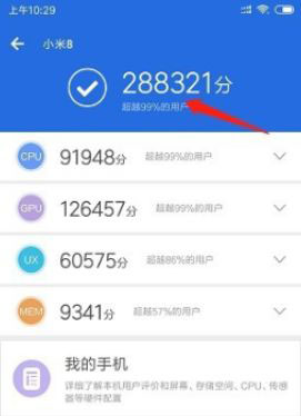 4、測試完成以后,就會(huì)出現(xiàn)一個(gè)跑分的結(jié)果分?jǐn)?shù)。還有一個(gè)相對的排行榜。以了解你手機(jī)性和市面上同分?jǐn)?shù)的機(jī)型。