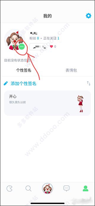 2、點(diǎn)擊資料界面左上角頭像下方的綠色圓圈。