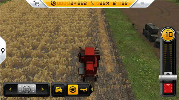 2、但如果你覺得自己的開車技術(shù)實(shí)在爛的話,小編這里可以教大家一個(gè)方法:先把收割機(jī)開到小麥附近,然后點(diǎn)擊屏幕下方的“方向盤按鈕”,這樣收割機(jī)會(huì)自動(dòng)收割小麥。