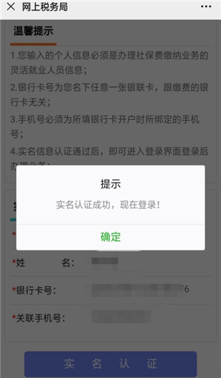 3、輸入證件號碼和姓名、點擊“登錄”;接著閱讀提示并點擊“確定”;