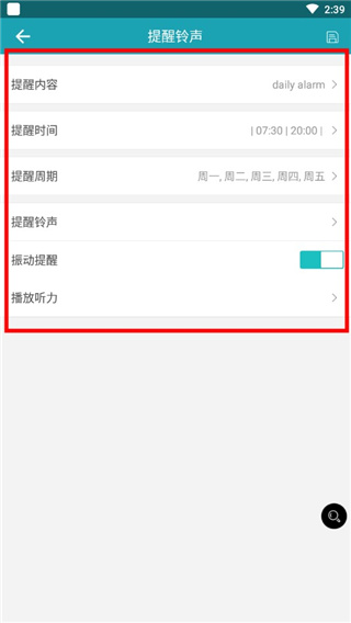 4、可以選擇提醒鈴聲、時(shí)間、周期等。如圖所示: