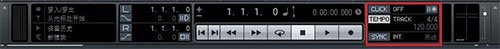 5、在走帶控制器的右側(cè),我們找到“TEMPO”,點(diǎn)擊一下“Track”,就可以在整個工程的速度進(jìn)行調(diào)整。拍子和速度都可以在這里修改。