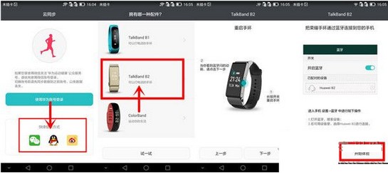 4、登錄帳號(hào)支持"微信/qq/微博"三方社交帳號(hào),登錄成功后選擇"TalkBand B2""開始體驗(yàn)"即可進(jìn)入軟件主頁(yè)面。