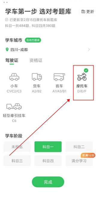 5、你就可以發(fā)現(xiàn)以及切換到摩托車題目的考試題目了