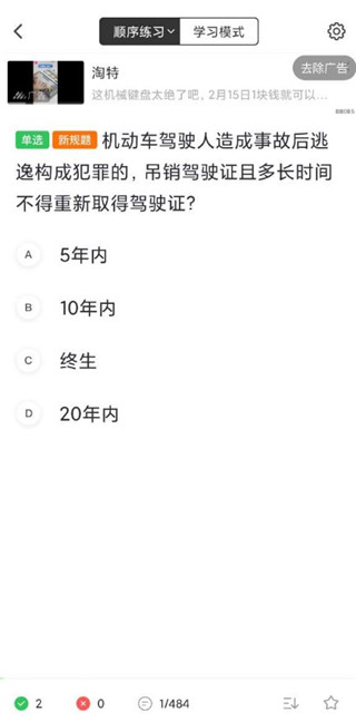 4、然后回到考試版塊,點擊順序聯(lián)系或者模擬練習(xí)