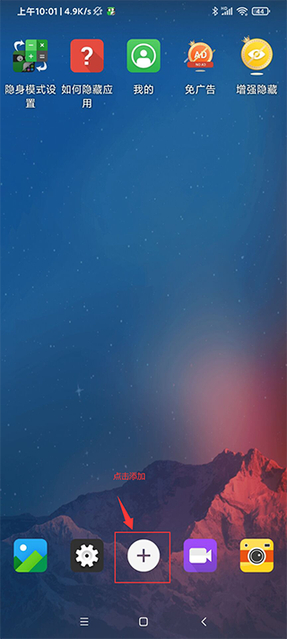 3、點擊下方的“+”,可以隱藏或者雙開應(yīng)用;