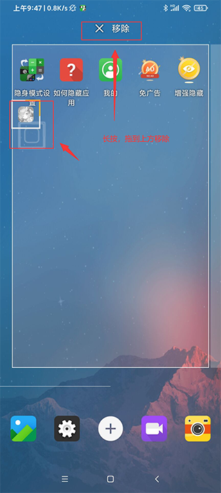 1、只需要輕輕一點,就可以將需要隱藏的應(yīng)用快速隱藏,在手機(jī)桌面上不再顯示。