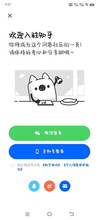 1、在本站下載安裝知乎純凈版后,點(diǎn)擊進(jìn)入,輸入賬號手機(jī)號登錄,或者使用第三方登錄平臺。