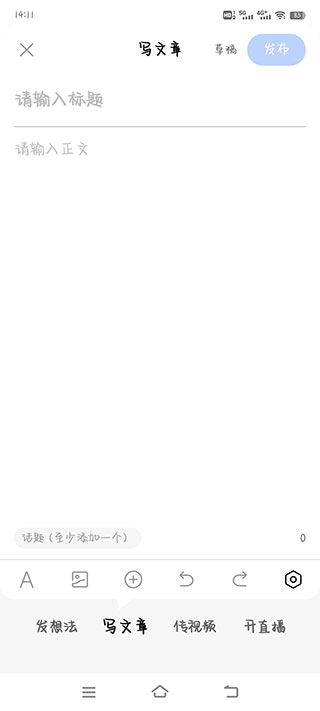 4、點(diǎn)擊底部菜單欄中心+號,可以發(fā)布作品,帖子文章,還可以開直播哦!