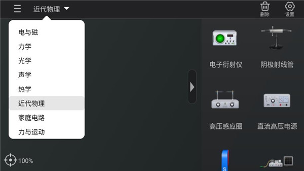 7、近代物理模塊:近代物理模塊包含波粒二象性、原子物理兩大板塊,可以演示電效應,探究光電效應規(guī)律,觀察原子放光現(xiàn)象,模擬α粒子散射,了解氫原子能級結(jié)構(gòu)等。