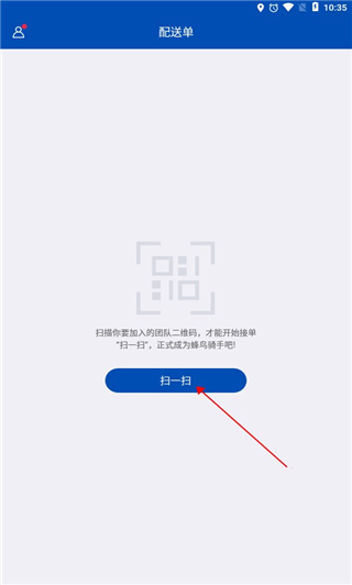 3、進(jìn)入軟件,點(diǎn)擊掃一掃掃描團(tuán)隊(duì)二維碼即可開始接單。