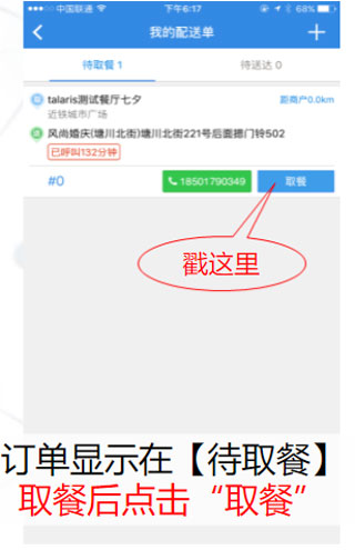 4、等待派單,派單之后,到待取餐里點(diǎn)取餐。