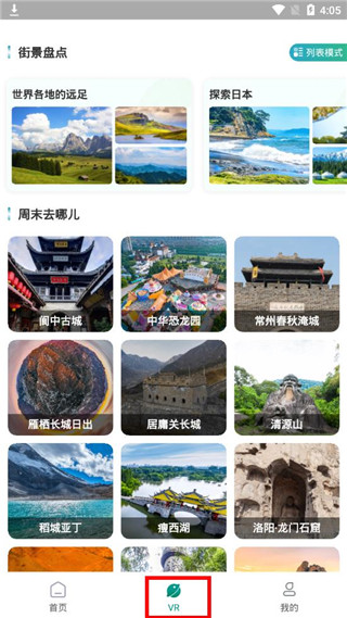 3、打開“VR”列表還可看提供著各種風(fēng)景地區(qū)可自由選擇,相信每一處都是你沒見過的街景視角