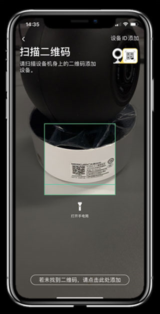 登錄APP后,攝像機(jī)在出廠狀態(tài)下上電后紅綠燈交替閃爍,在APP上點擊 設(shè)備 主界面右上角的“+”,掃描無線網(wǎng)絡(luò)攝像機(jī)機(jī)身上的二維碼,如下圖: