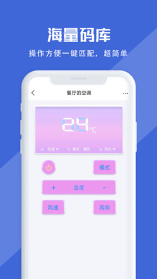 萬(wàn)能遙控支持各種品牌空調(diào),內(nèi)置遙控器碼庫(kù),無(wú)需網(wǎng)絡(luò)輕松遙控,人性化智能搜索遙控器,手機(jī)一秒變智能遙控器,一部手機(jī)遙控所有家用電器!