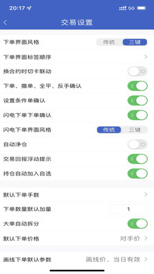 5、根據(jù)自己的交易習(xí)慣可以設(shè)置交易參數(shù),這樣用戶就能一鍵進(jìn)行交易了;
