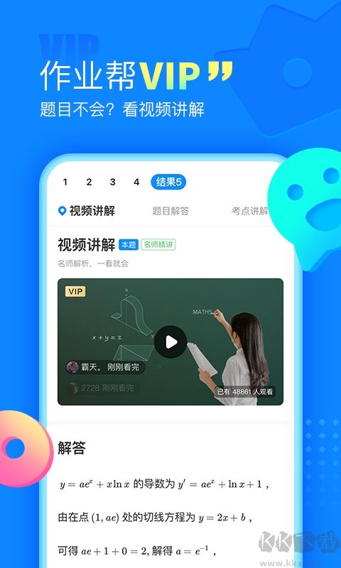 作業(yè)幫VIP:題目搜一搜,老師視頻講。清晰講解答題思路,搞懂同類題。