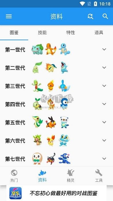 資料區(qū)包含圖鑒/技能/特性/道具,方便玩家查詢資料。