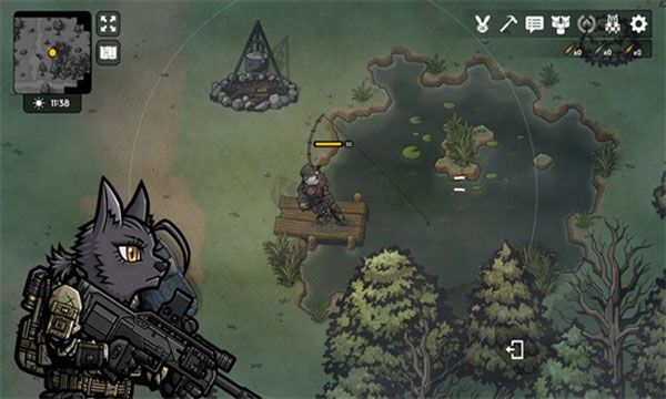 1、打開并進(jìn)入游戲。使用左側(cè)的輪盤控制移動(dòng)方向,右側(cè)的輪盤控制射擊、拾取等操作。