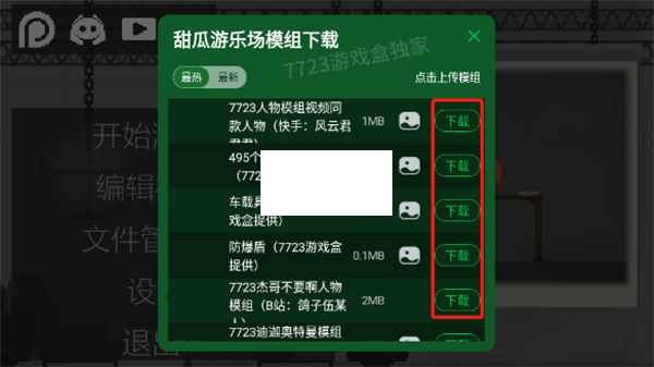 1、進入游戲點擊打開7723模組,選擇一個模組然后點擊下載