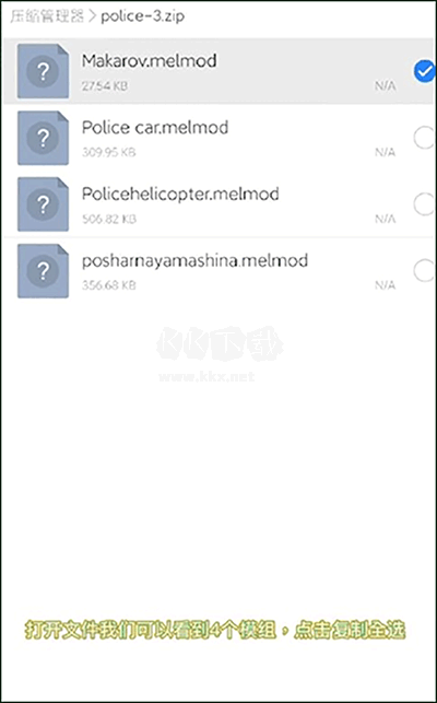 1、在第三方渠道下載好的模組,將文件使用“ES瀏覽器”打開,然后復制全部模組