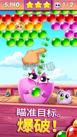 2.玩家需要通過數(shù)百個關(guān)卡才能營救所有被困在泡泡中的貓咪。關(guān)卡數(shù)量會不斷更新,難度也會逐漸增加。