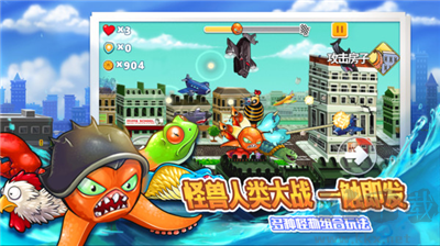 關卡設計上,每個大關都有個終極目標,比如第一關紐約市是自由女神像。每關一開始的過場動畫相當有趣,可以看到主角本來在深海的洞穴滑手機或玩平板,然后又被人類激怒了而跑出來大鬧一番。每個大關有五個小關,中間有小王以及守護終極目標的BOSS,每個BOSS都很有特色,進攻節(jié)奏和硬直時機都要花一番時間來鉆研,難度并不低;