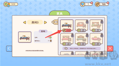 3、未解鎖的房間,可點(diǎn)擊進(jìn)行購買床;