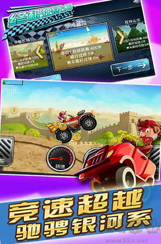 終極狂暴飛車是一款非常好玩有趣的賽車競速闖關類手機游戲,游戲采用卡通風格打造而成,擁有精美細膩的游戲畫面,絢麗精致的游戲畫風以及精彩多樣化的游戲玩法,帶給玩家極致的游戲體驗!在這款游戲中玩家可以在布滿石塊的山地馳騁,也可以在滿地黃金的古墓探索;這里你可以領略祖國山水,快來下載游戲吧!