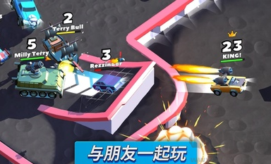 作戰(zhàn)模式還可以,地圖里面一頓亂撞,但是要小心不要掉進(jìn)水里,多吃皇冠,多多撞車,撞完趕緊跑,多碰幾次正方形的盒子能得到輔助道具,這游戲和朋友一起玩應(yīng)該會(huì)更好玩一些。