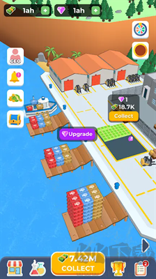 3、其中包含了對水壩等級的提升,對水壩收益效率的提升,對水壩收入速度的提升等等。除此之外,玩家還可以對水壩進行擴建,在水壩上游建造港口,購入漁船捕撈漁獲,賺取更大的收益。